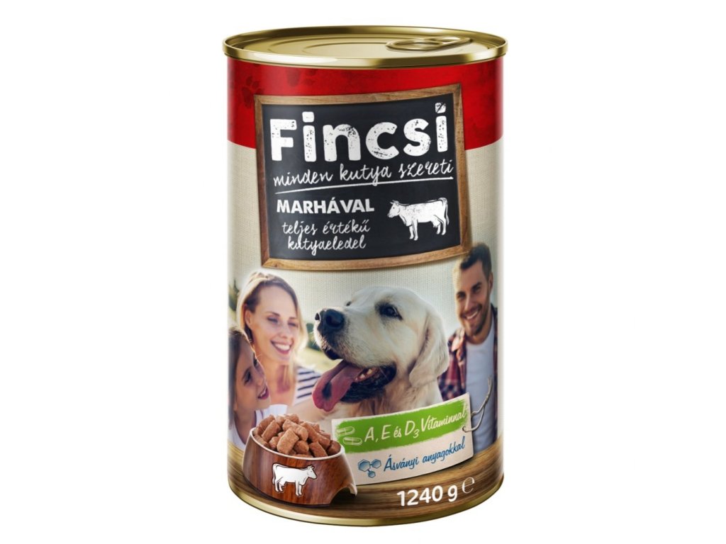 - Vysoký obsah hovädzieho mäsa: Fincsi Hovädzia Konzerva je vyrobená z kvalitného hovädzieho mäsa, ktoré je bohaté na bielkoviny a živiny. Tieto bielkoviny sú základným stavebným kameňom pre silné svaly a zdravý rast, čo je zvlášť dôležité pre aktívne psy.